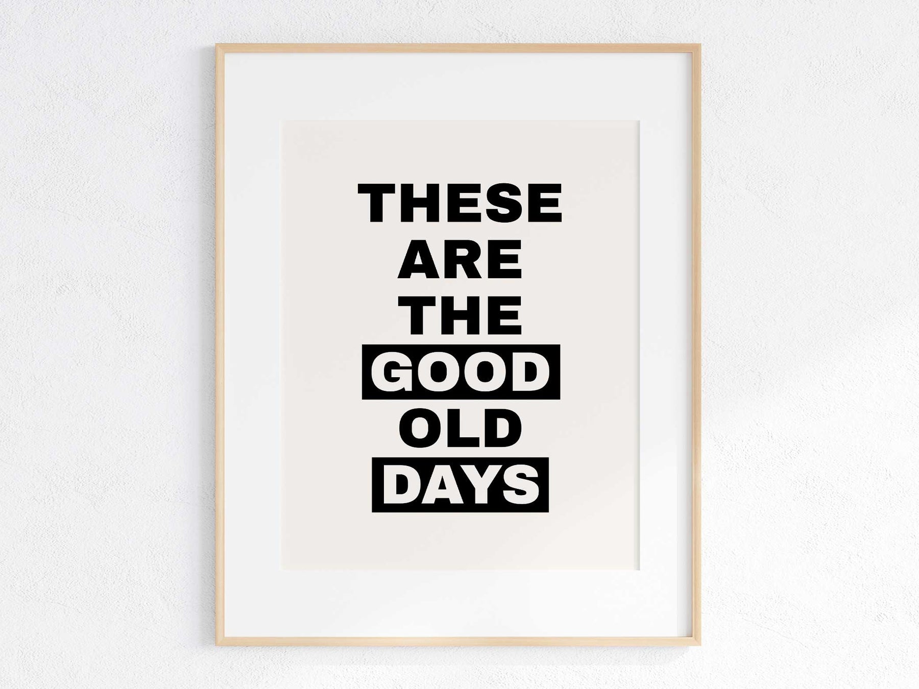 Add a bold reminder to embrace the moment with this modern These Are The Good Old Days print. Featuring clean black typography on a soft neutral background, this minimalist piece brings a confident and timeless message to any room — perfect for offices, living rooms, or gallery walls.