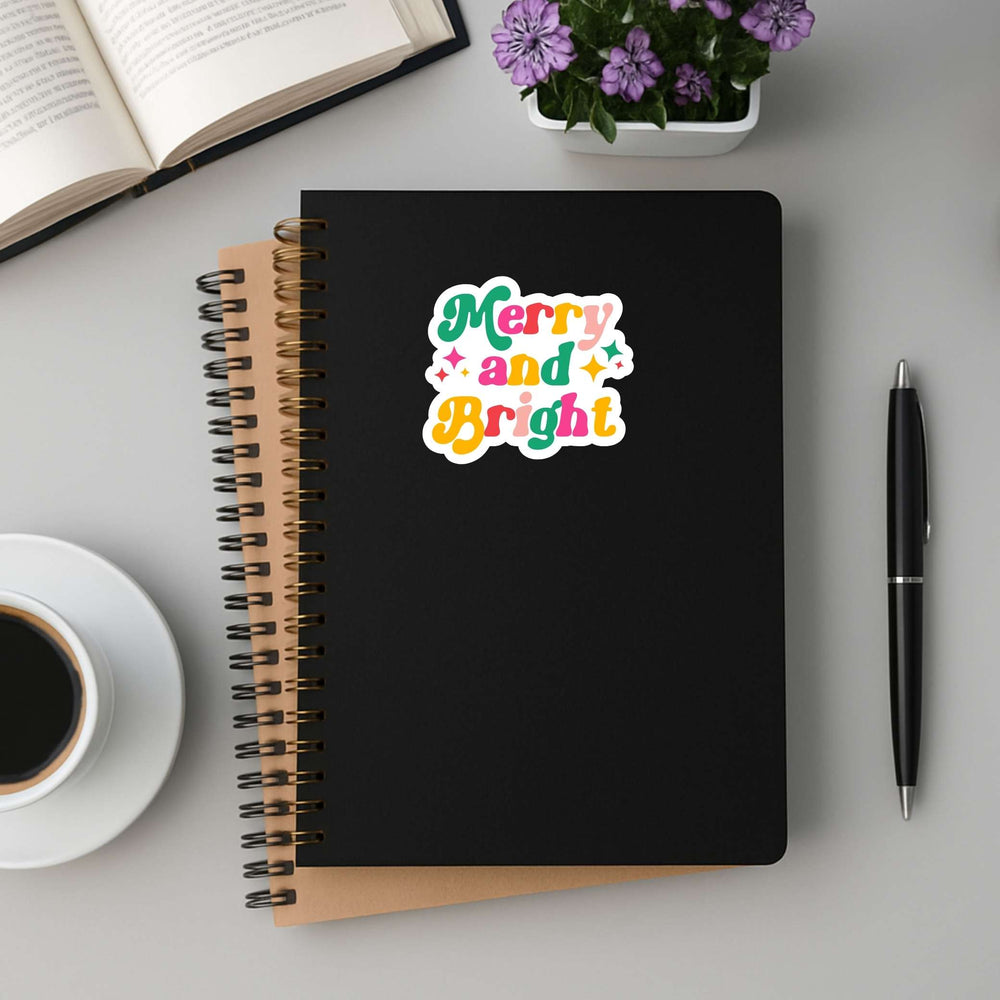 Merry and Bright Sticker – Retro Holiday Vinyl Decal, 3 x 3 in