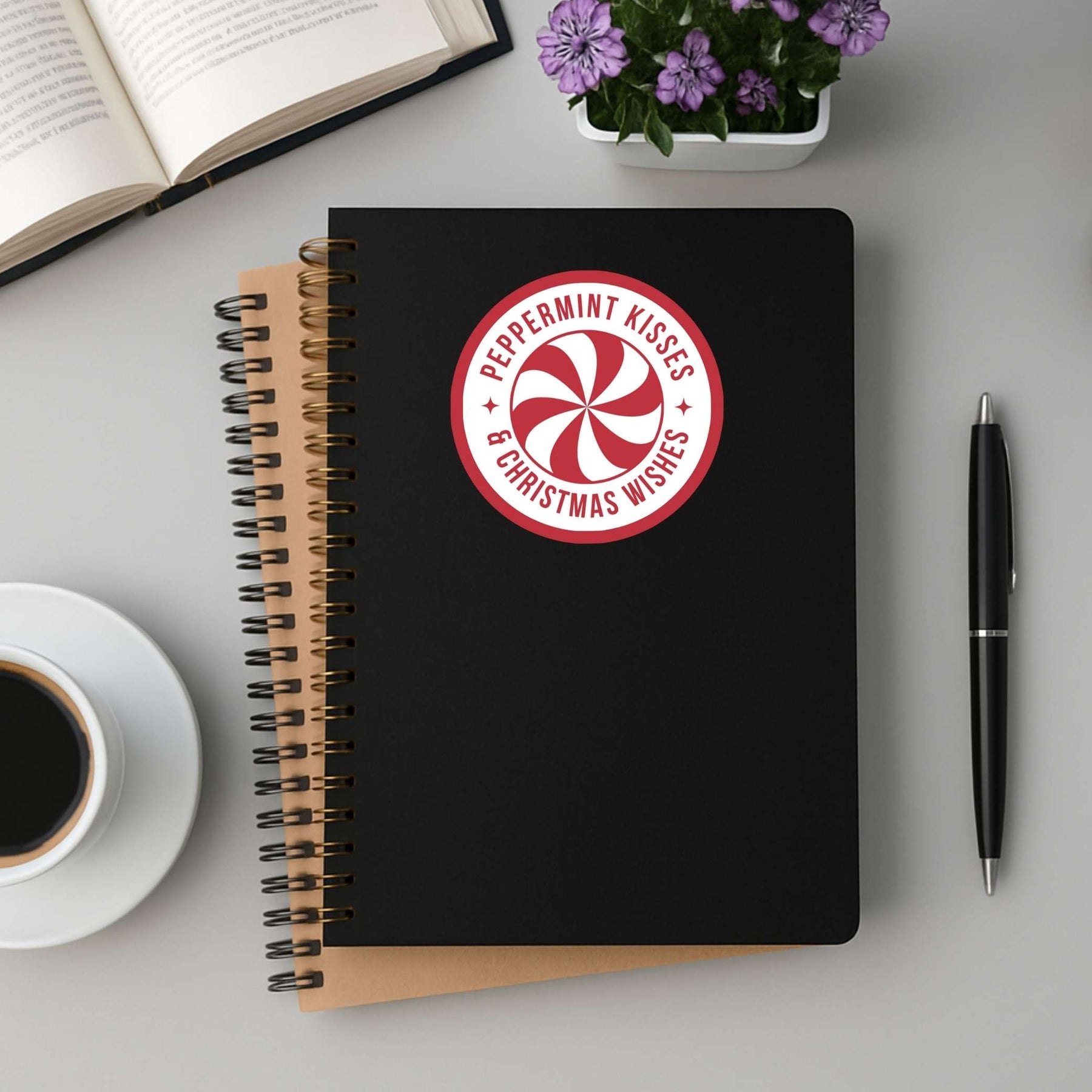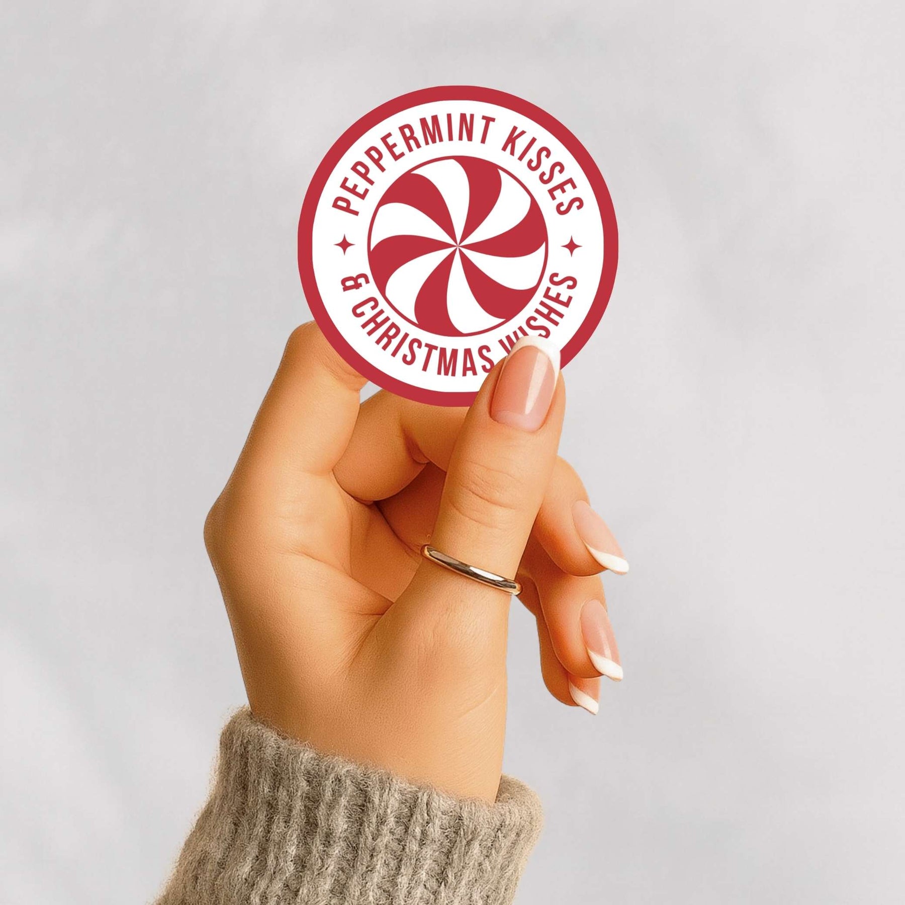 Peppermint Kisses & Christmas Wishes Sticker – Festive Holiday Vinyl Decal, 3 x 3 in