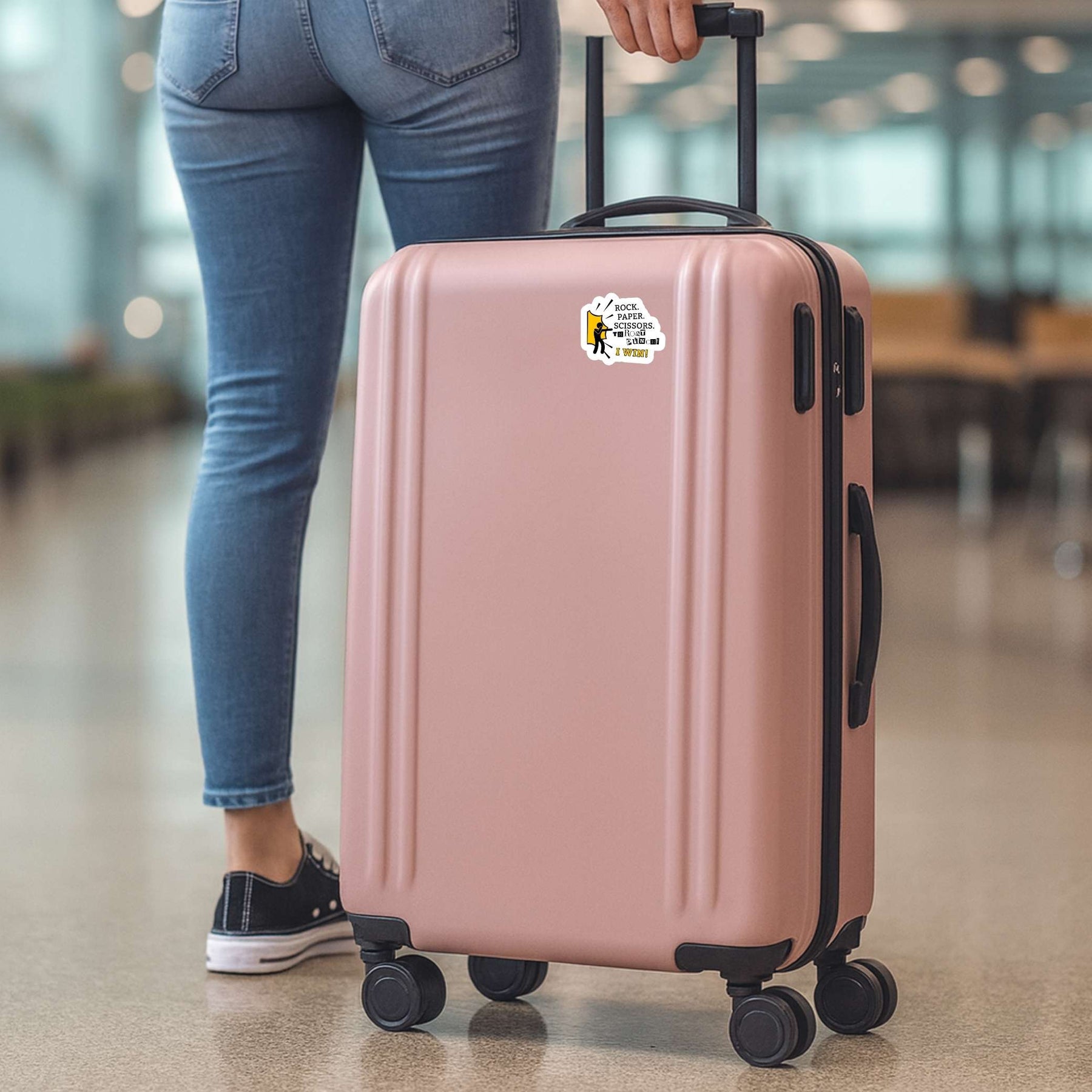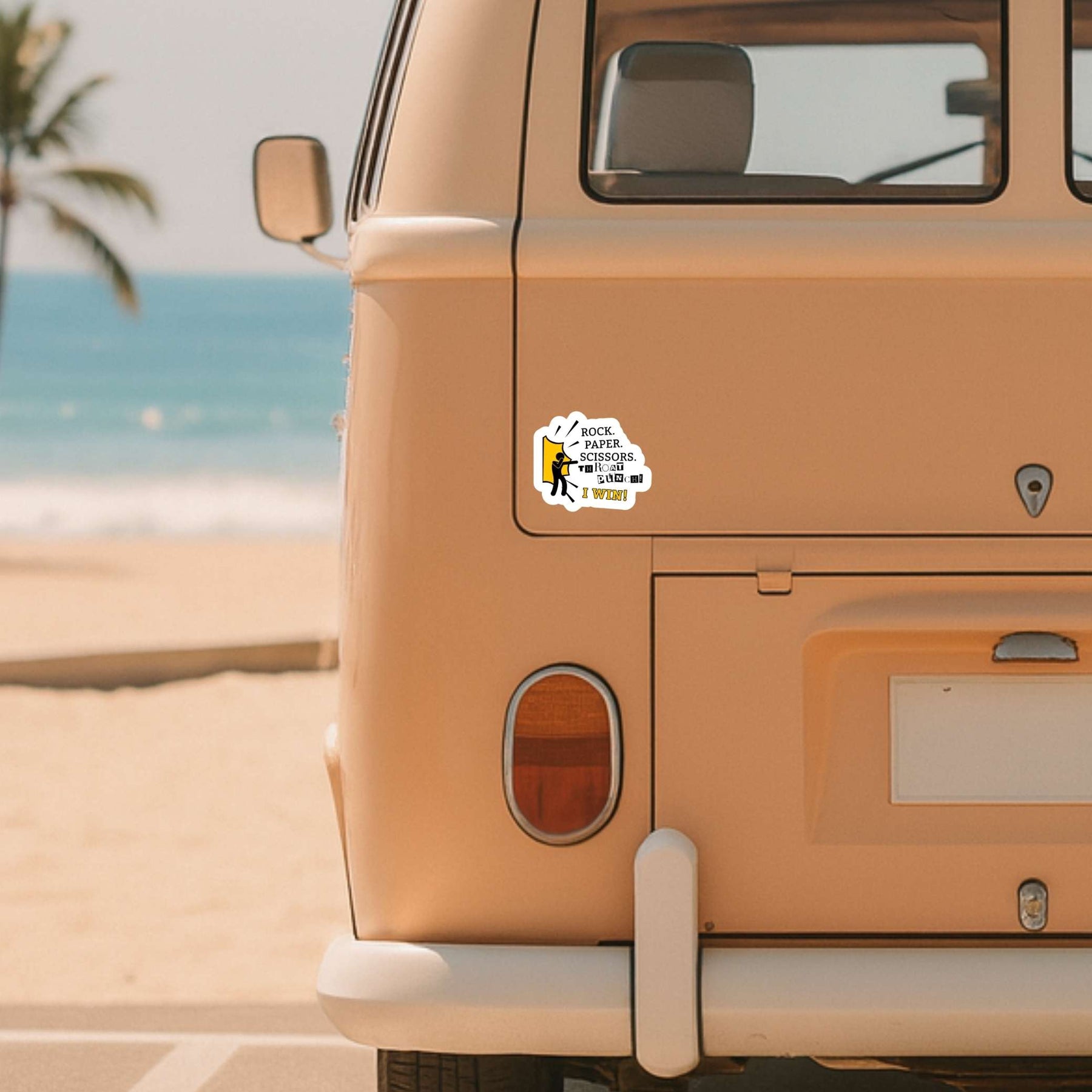 Show off your bold sense of humor with the Rock Paper Scissors Throat Punch sticker. Designed in a playful comic-book style with bold yellow accents and a mix of ransom-note typography, it’s perfect for anyone who plays to win—every time.