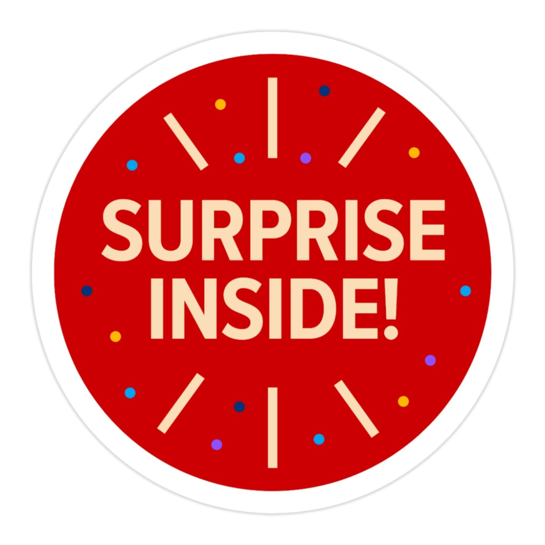 Add a pop of excitement to your gifts and packages with the Surprise Inside! sticker. With its bold red background, colorful confetti dots, and cheerful lettering, this design instantly makes any item feel special. Perfect for small businesses, gift wrapping, or spreading joy one package at a time.