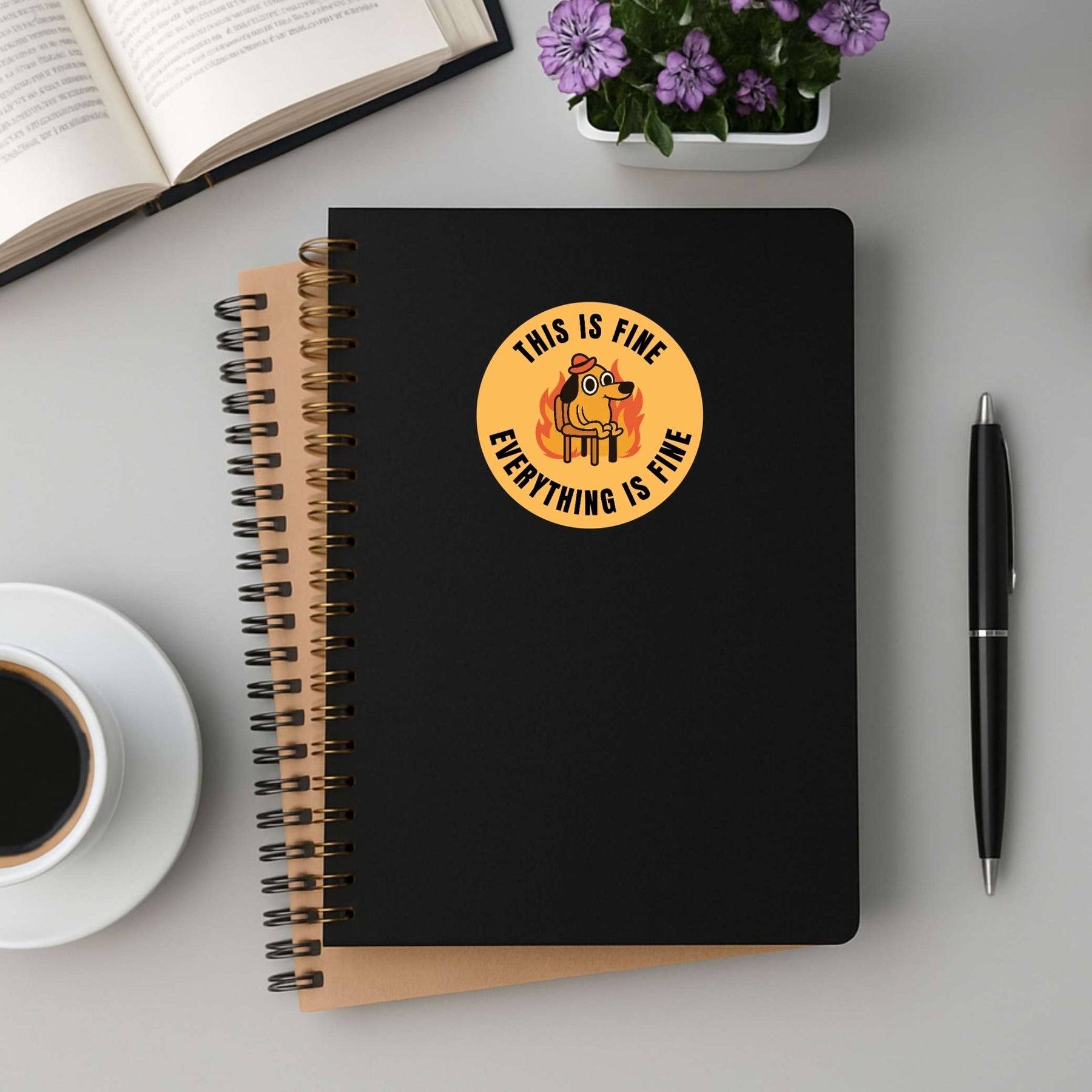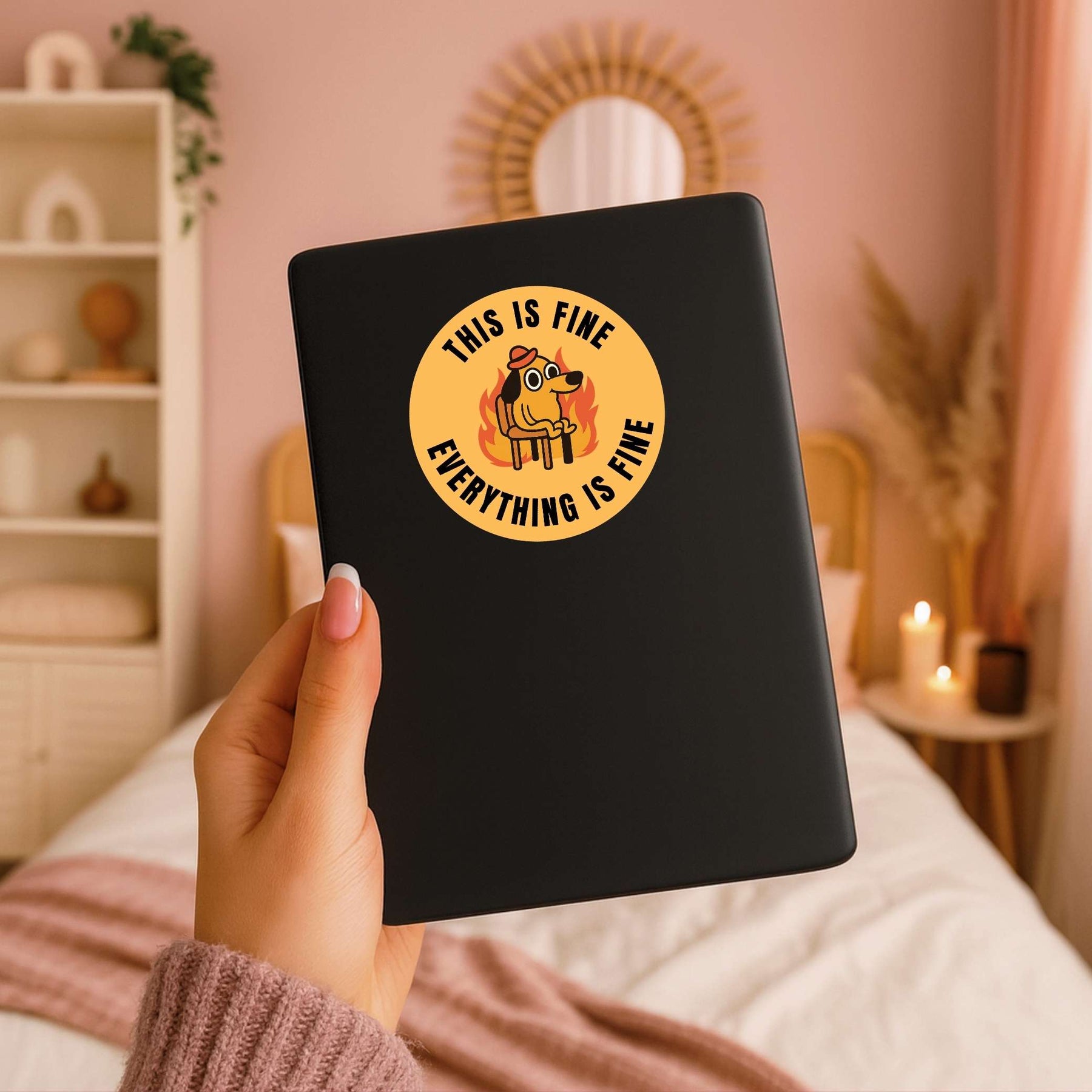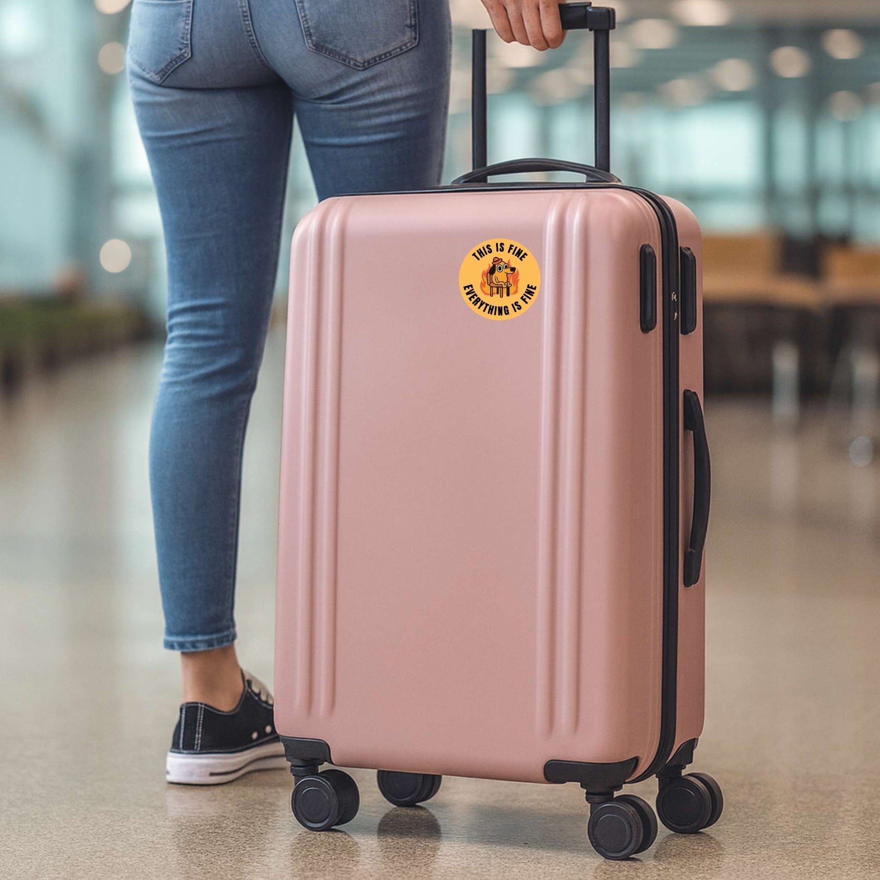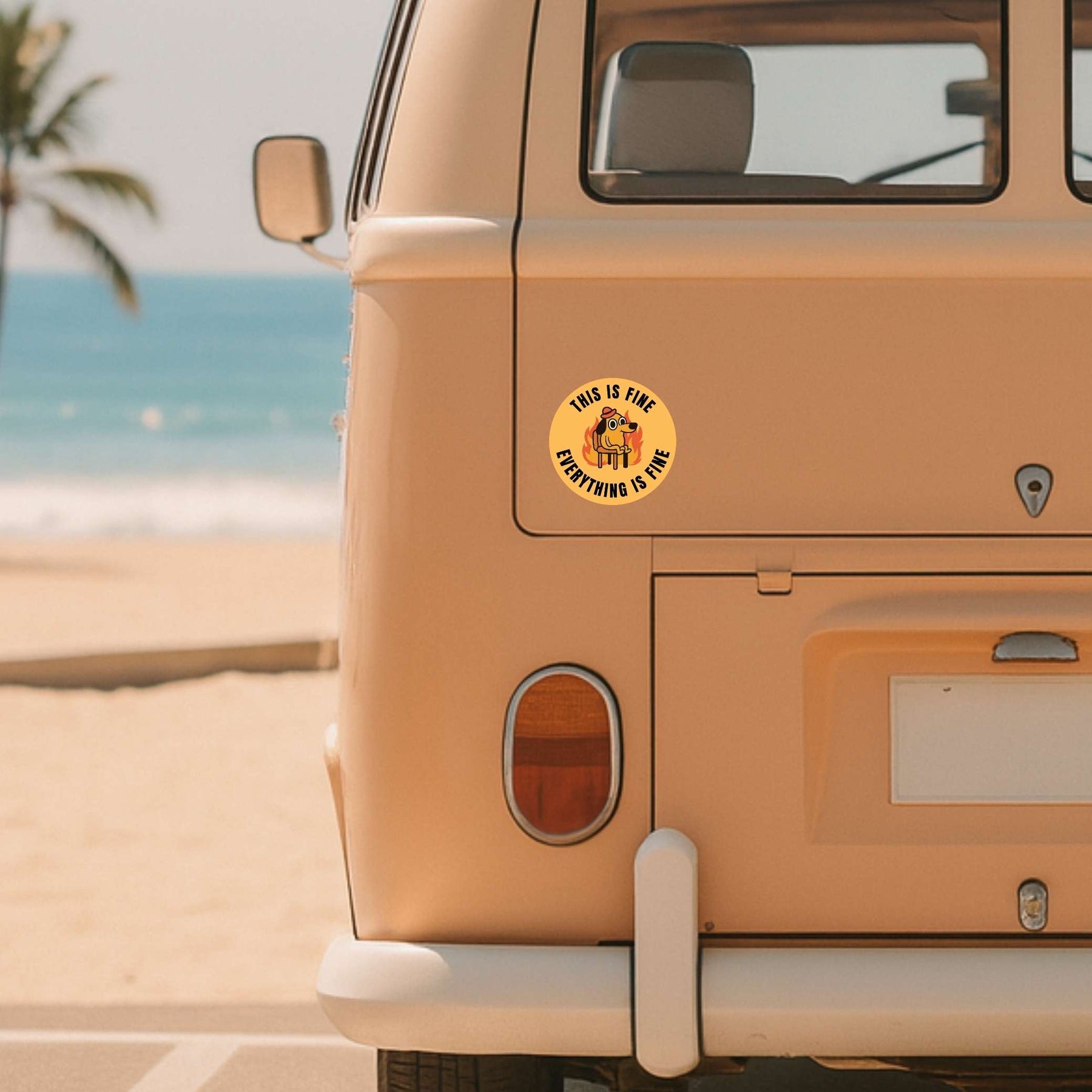 Stay calm in the chaos with the This Is Fine sticker, featuring the iconic dog surrounded by flames with the classic “Everything Is Fine” quote. A perfect mix of humor and relatability, this sticker captures those everyday moments when you’re just trying to hold it together with style.