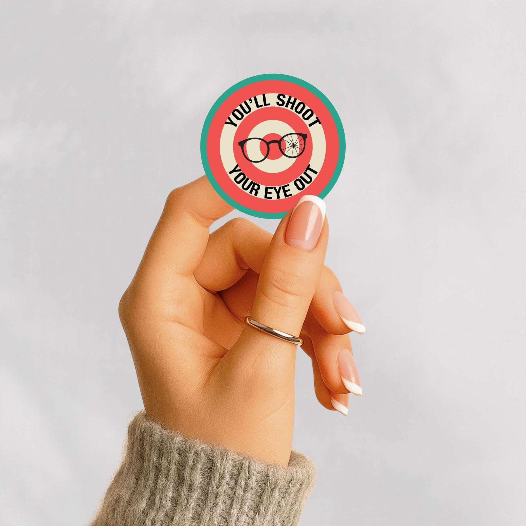 You’ll Shoot Your Eye Out Sticker – Funny Christmas Movie Vinyl Decal, 3.25 x 3.25 in