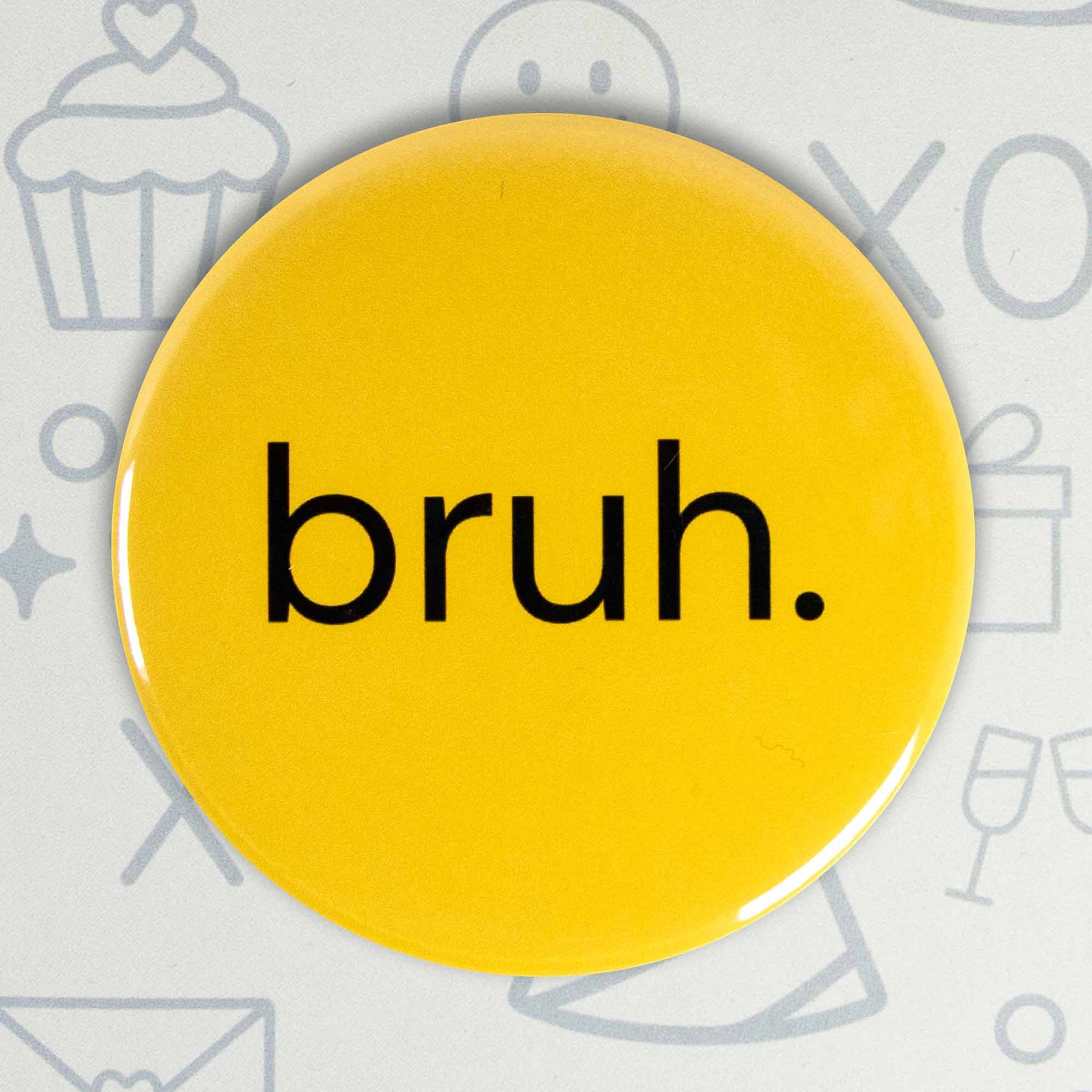Bruh. Button or Magnet – Funny Internet Slang Meme Pin | Sarcastic Gift