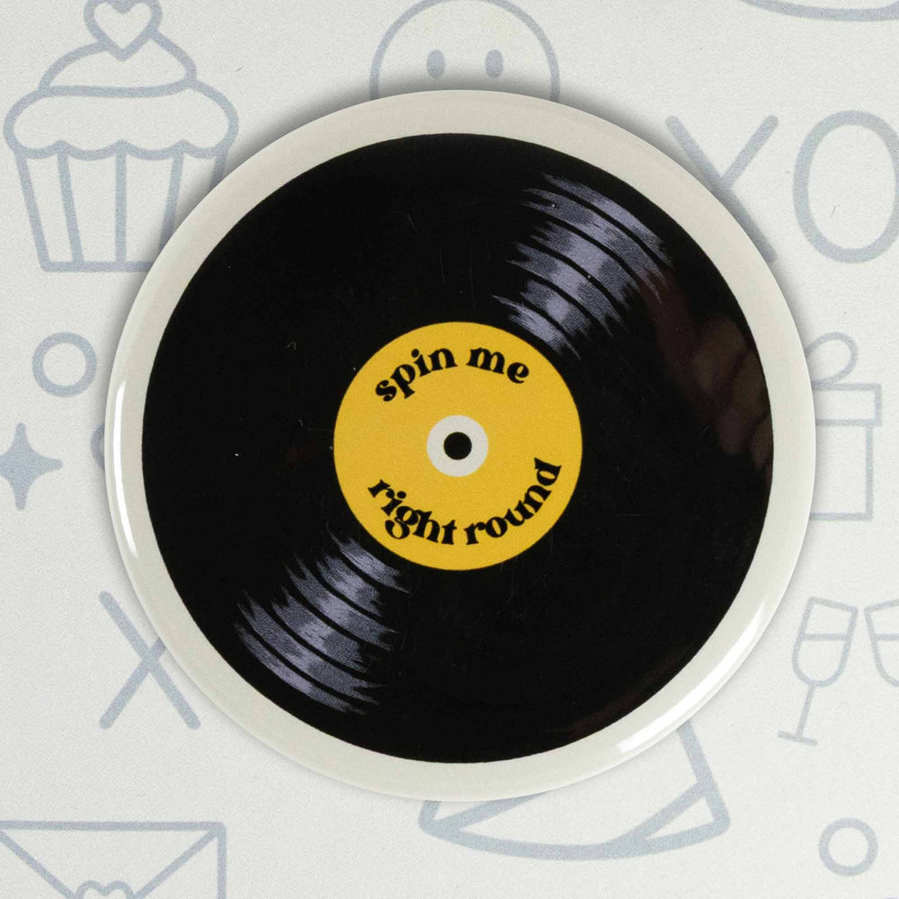Spin Me Right Round Button or Magnet – Retro Vinyl Record Design | Music Lover Gift